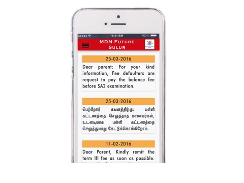 - Important messages like emergency holiday, fees remainder, bus late, absent report, etc can be viewed.