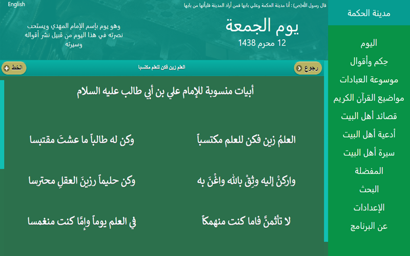موسوعة إسلامية على مذهب أهل البيت عليهم السلام وينقسم البرنامج لعدة أقسام: