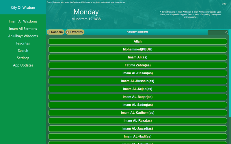 * قسم الحكم والأقوال ويحتوي على أكثر من 23 ألف حِكمة وحديث للنبي محمد وأهل بيته الطاهرين صلى الله عليه وعليهم أجمعين.