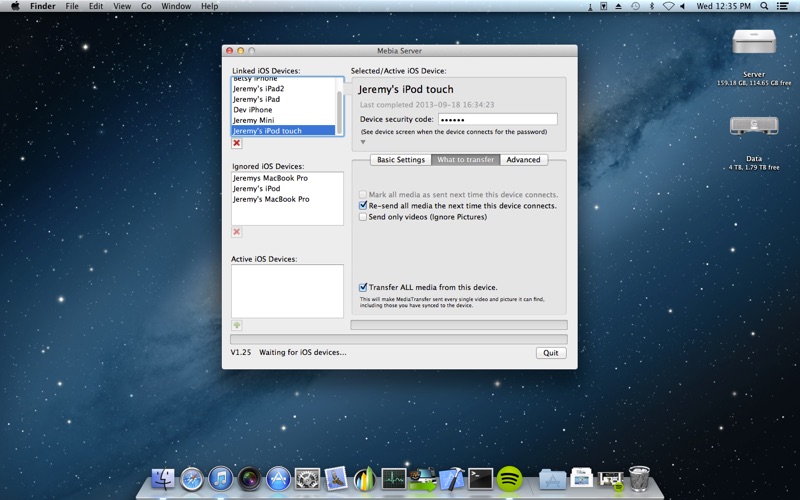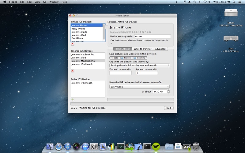Mebia server App allows your Mebia apps on your iOS devices to transfer your videos and pictures to your Mac wirelessly.