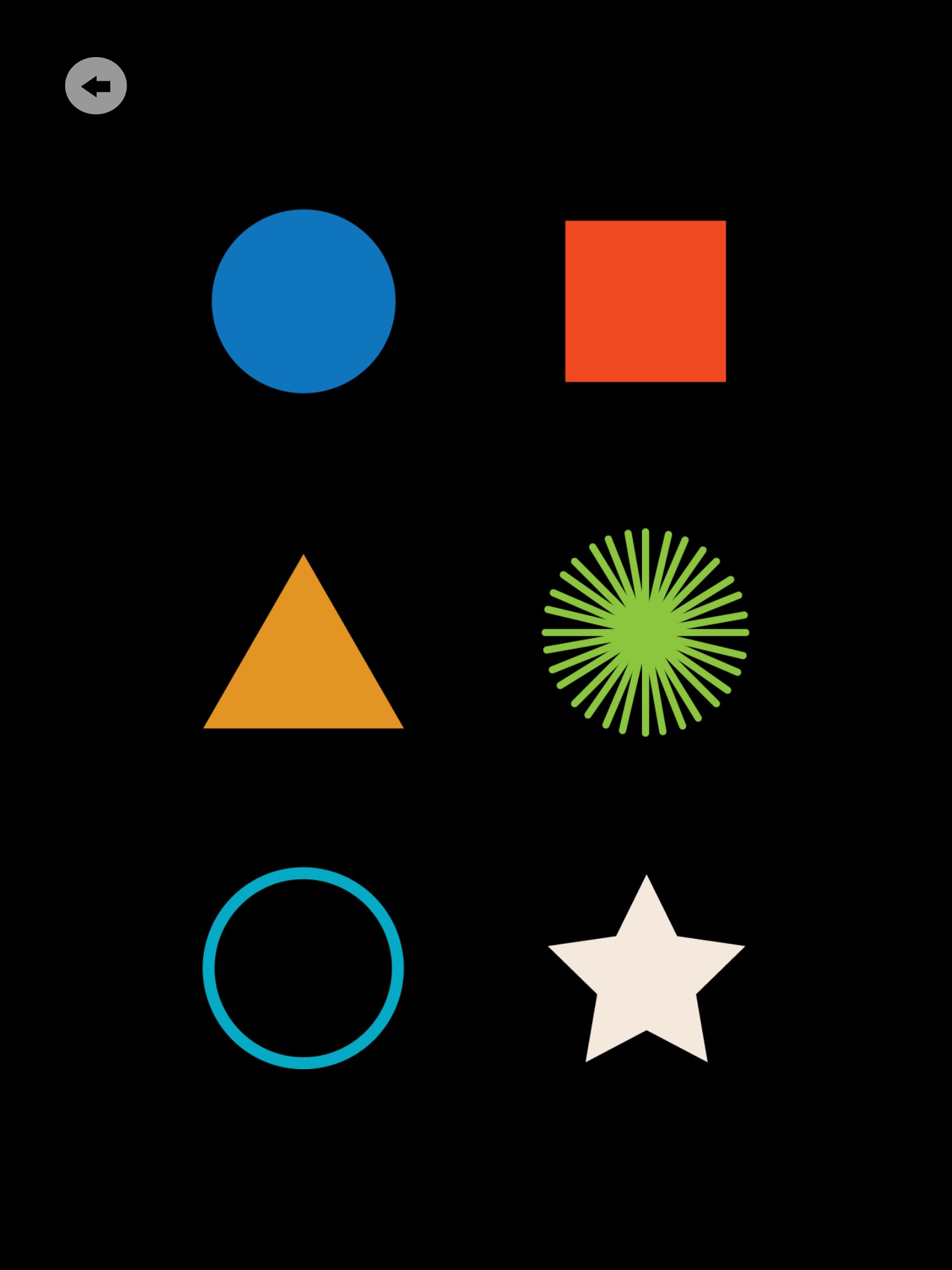 It’s easy as 1 - 2 - 3. Play a sound and create a shape by simply touching the screen. Touch the shape again to ‘pop’ it. Flick, fling, tap, tap, tap. Shake the device and watch/hear the magic.