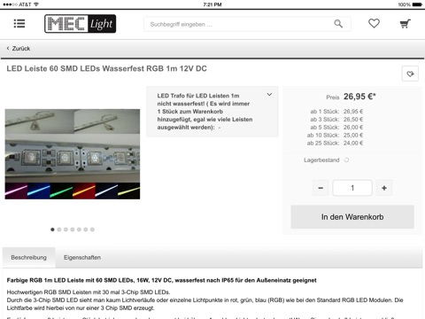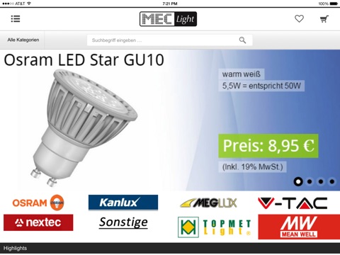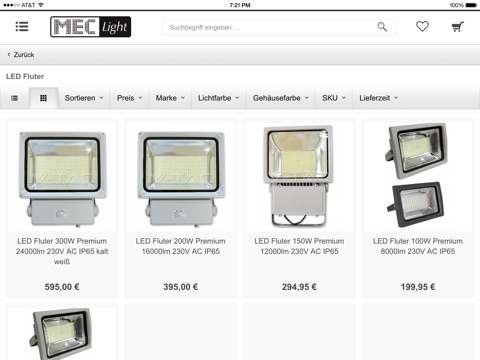 Onlineshop für LED Beleuchtungs-Produkte. Mit unserer App können Sie Ihre Produkte auch einfach per Smartphone oder Tablet bestellen.