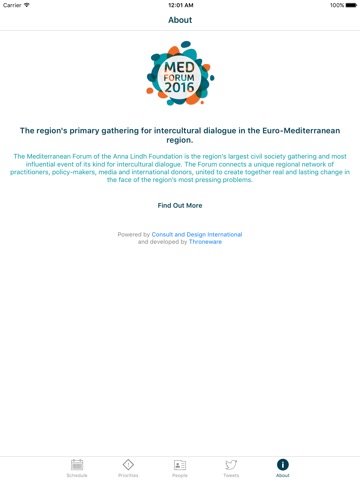 The Med Forum App provides the programme and information for the Anna Lindh Foundation Mediterranean Forum taking place in Valetta, Malta in October 2016. The Mediterranean Forum of the Anna Lindh Foundation is the region’s largest civil society gathering and most influential event of its kind for intercultural dialogue. The Forum connects a unique regional network of practitioners, policy-makers, media and international donors, united to create together real and lasting change in the face of the region’s most pressing problems.