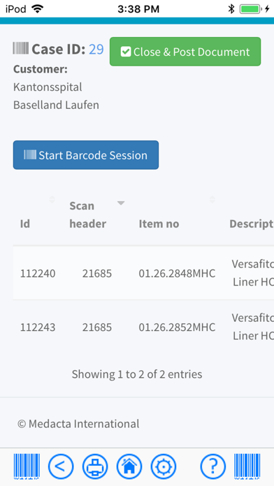 App is providing barcode scanning to service and work order system Medacta myOps.