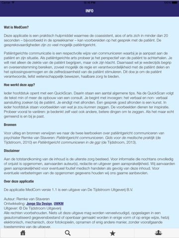 MedCom is een unieke zorg-communicatie app waarmee je je in minder dan 15 seconden voorbereidt op een gesprek met patiënt of cliënt. De gespreksvaardigheden zijn patiëntgericht: naast respectvol en effectief, zoveel mogelijk wetenschappelijk verantwoord. Handig voor in de spreekkamer, op de afdeling of bij de patiënt thuis.