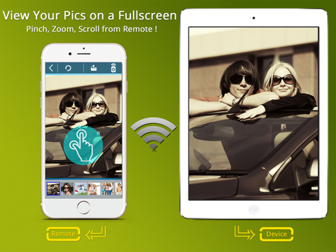 + View images on full screen on the Device side. You can also pinch/zoom the photos on the Remote. Pinch/zoom effect is immediately casted on photos on the other device.