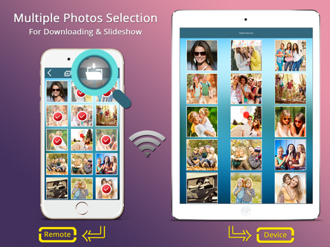 + Easy selection of your media – Photos & Videos, with fast scrolling on both devices. As you scroll your pictures or videos list on the remote side, the list is immediately streamed on the connected device.