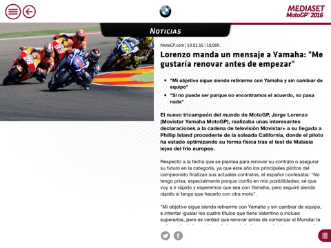 Mediaset España te ofrece la posibilidad de tener en la palma de tu mano -en tu smartphone o tablet- todos los contenidos del Mundial de MotoGP™ 2016: