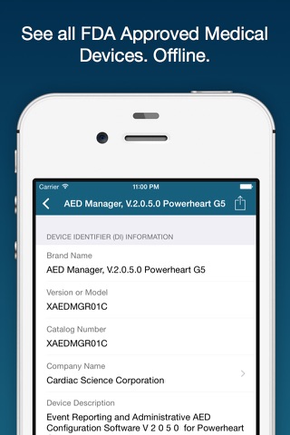 All details included in FDA approval available for offline browsing. Share details via export from the app. Updates provided monthly as new devices are approved.