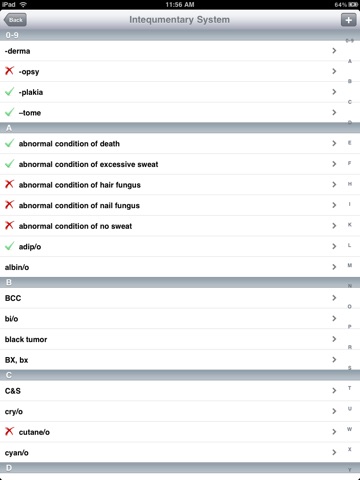 Whoever is rating this 5 stars is not really studying for med. term tests. You can not change or alter or add to any of the existing definitions in this app! some of my terms have diff info, no way to edit, add, or change! It gives impression you can choose a system and do all those flash cards from that sys. successively, NOT TRUE!!! must go to menu and select each card separately. Plus NO INSTRUCTIONS. website is zero help, has no instructions, only a FAQ with TWO questions. ZERO help. Save your money and just buy some index cards!!
