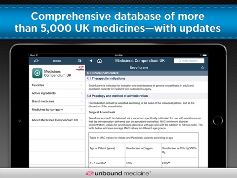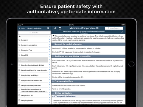 Download the complete Summaries of Product Characteristics (SPCs) of UK medicines to your mobile device for at-your-fingertips access anywhere, even when no network connection is available. Medicines Compendium UK contains the comprehensive, regulated database of SPCs (from the "eMC") for more than 5,000 brand name and generic drugs. Updated regularly, Medicines Compendium makes it easy to find the information necessary for effective and safe administration, including indications, dosing, side effects, and medicine interactions.