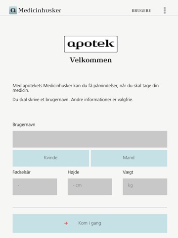 Når du har oprettet en bruger, kan du tilføje medicin til medicinlisten. Hvis du indtaster et tidspunkt for, hvornår du skal tage medicinen, vil app’en sende dig en påmindelse, når det er tid til at tage medicinen.