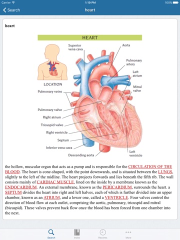 If you know the spelling of the word (even only a few characters) you can use the Search feature to quickly find more information about the word or you can browse the entire dictionary by using the Alphabetical Index.