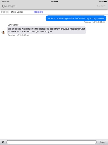 Communicate via text message using Mediprocitys secure app on your iPhone, iPad or iPod Touch. All of your communication remains secure and private on Mediprocity.