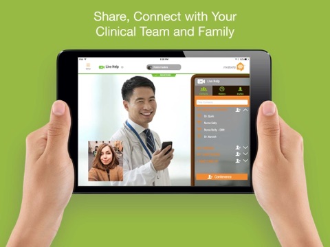 - Share and connect with your care team and loved ones with live video video & messaging