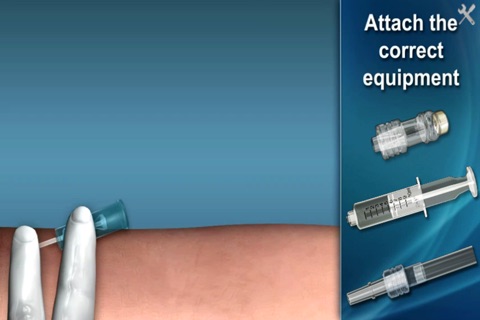 The Advanced/Paramedic task of Obtaining IV Access is fully illustrated using 3D graphics and the critical skills are tested using interactive exercises. This Intravenous Infusion lesson includes: preparing the IV, performing the venipuncture, and discontinuing the IV.