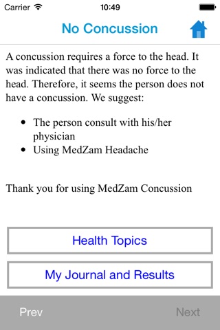 MedZam Concussion is a convenient assessment tool anyone can use anytime anywhere. MedZam Concussion will help you check for and evaluate a possible concussion. This user-friendly app was developed by a group of national medical experts to assist parents, coaches, athletes, and trainers. It can be used on the sideline or at home, immediately after the event or sometime later. Learn what to do to care for a concussion. Complete with: Do’s and Don’ts, FAQs, and Quick Relief tips.
