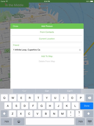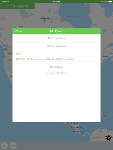 Meet Me in the Middle (iTM) is an application that helps you find the middle point between you and your friends. No more will you have to guess where the middle is between your friends so you can meet up! Once you have found the middle, you can use various services to find something around the middle to meet up at!