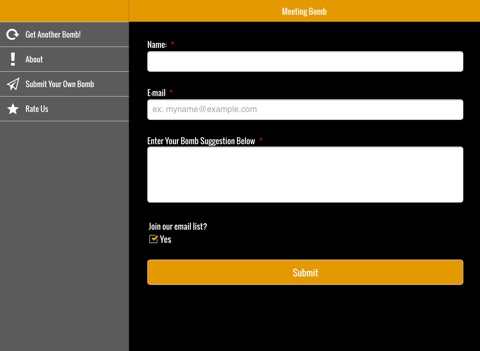 Just open the Meeting Bomb app and it will provide you with one of hundreds of intelligent, thoughtful and disruptive quotes you can say to the team to completely change the dynamic of the meeting. These quotes have been honed by a team of executives who have spent far too many hours in bad meetings.