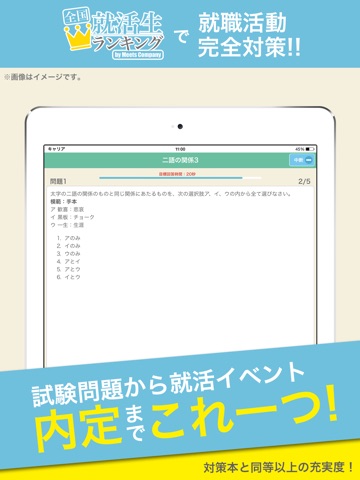 難関企業内定に重要な言語問題、非言語問題、時事問題をこのアプリ1本で対策できます。
