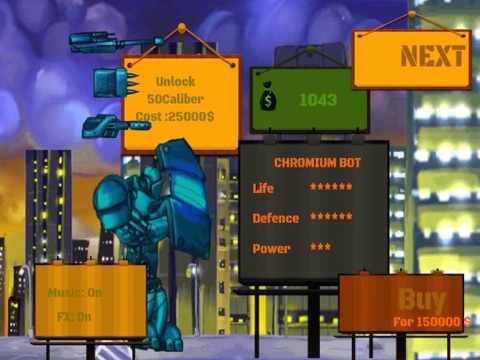 Unleash your Robo fury with our 50Caliber guns, Rocket Launchers and Laser Shots.