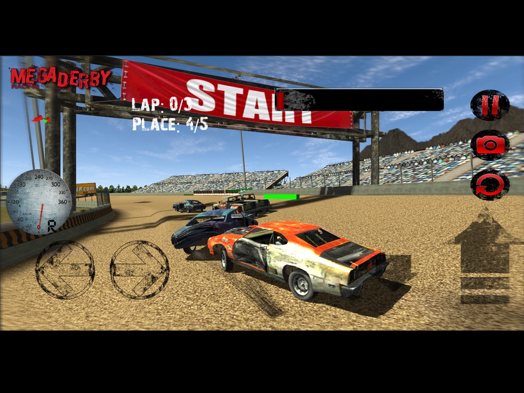 Megaderby Racing is adrenaline-filled muscle car racing game with damage,realistic physics and beautiful graphics, innovative game play mechanics and good fun!