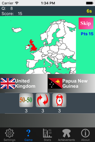 * Use power ups during the game to reduce choices, swap questions, increase answer time, boost score