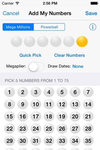 * Use quick pick/number generator to pick one or all your numbers