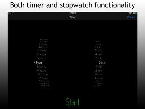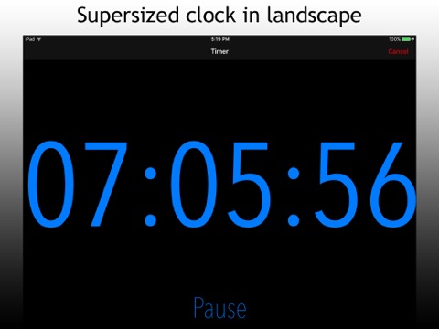 An awesome super-sized stopwatch or timer for almost any basic need. Great for presentations or conferences, where a large display is essential, yet also serves basic needs like timing a workout, cooking, or keeping track of time spent on any task. Also works when app suspended and alerts you with notification when complete.