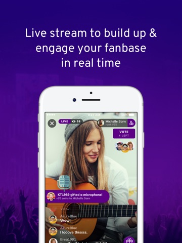 • Live stream and interact with fans in real time.
