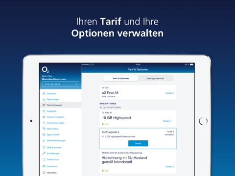 Die Mein o2 App bietet folgende Funktionen: