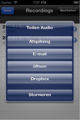 Tonaufnahme, mit speichern Dropbox-Option.