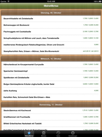 - Auswahl der favorisierten Mensa