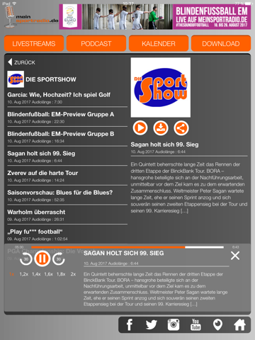 meinsportradio.de ist das Sportradio im Internet. Sport für die Ohren. Rund um die Uhr. Live und als Podcast.