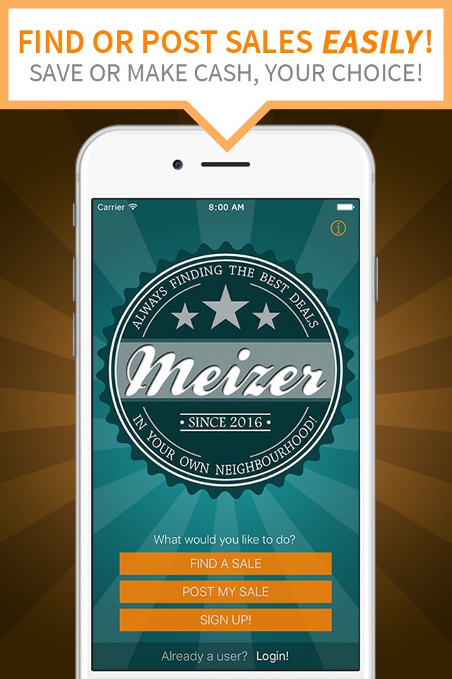 Meizer is revolutionizing the way garage/yard sales are hosted and searched for. Using the benefits of todays modern technology, Meizer provides a new way of "Always finding the best deals, in your own neighbourhood!”