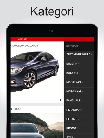 Mekanika memberikan bahan bacaan yang lebih meluas dan pelbagai, material-material di dalam aplikasi mudah alih ini disegmentasikan mengikut kategori tertentu.