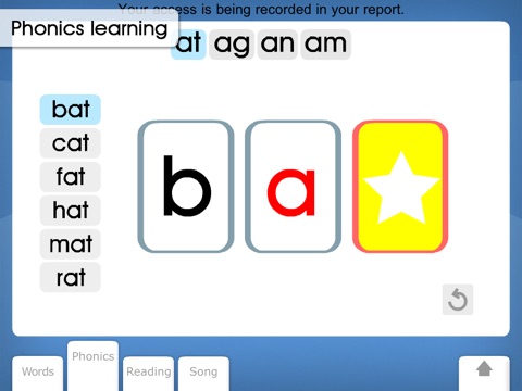In this app, CVC words of "bat, bed, tin, fog, nut, etc" will be introduced with different activities.