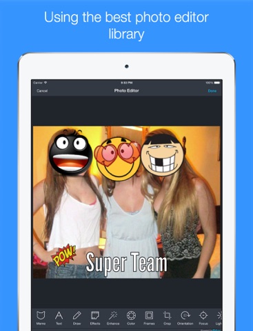* Edit your photos via professional photo editor Aviary