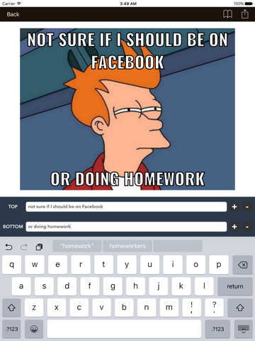 Stay entertained for days with hundreds of popular memes to create from. Then share the laughs with your friends!