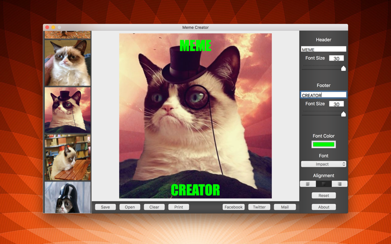 Easy to use. Good Font support. Makes it very easy to create a meme with your own images or any other. Worth the price. It has I believe all you need to make a meme.