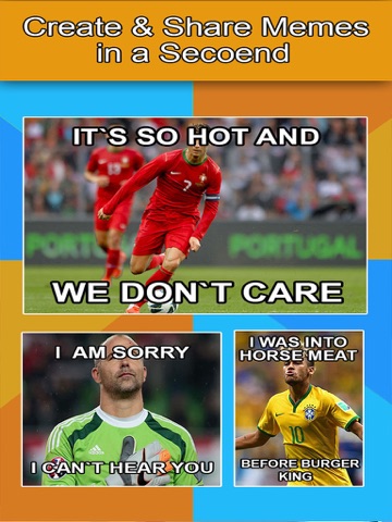 Add funny captions to popular Soccer Player images or your own photos. Easily generate your own memes and share them with your friends!
