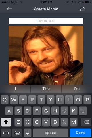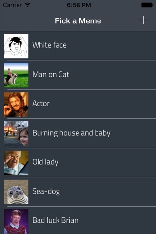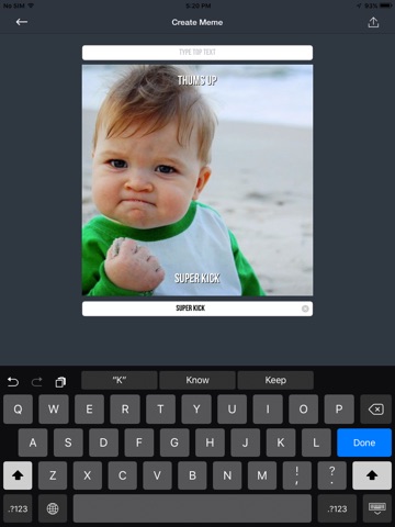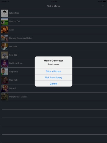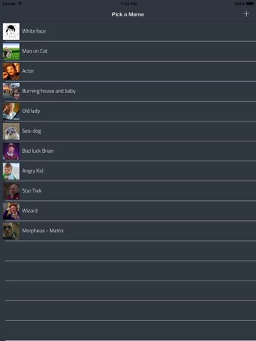 Meme Creator is a Universal App.you can create your funny meme images from your own pictures or from the ones suggested on the Home screen (you can add all images you want in there). Ten, after setting the top and bottom texts over your selected picture you can share them by Mail, SMS or by the social network apps installed on your device, like Facebook, Twitter, Google +, WhatsApp, etc.