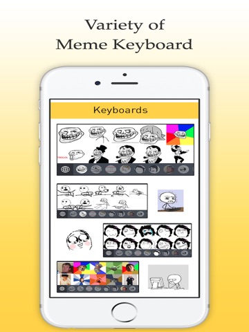 Custom keyboard full of memes: Just from a tap, the user gets a custom keyboard to easily share memes.