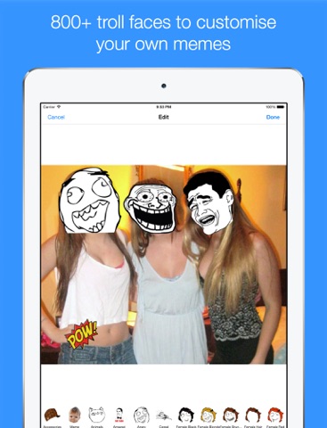 The easiest way to create your own memes and share them with your friends in MESSENGER!