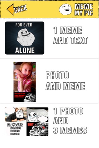 MemeMyPic allows you to pimp your photos with the most popular meme faces. Make fun of your friends using this app and share your memed pic everywhere you want!