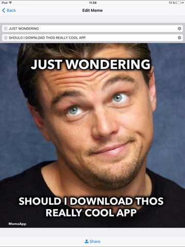 MemeApp is the easiest and fastest meme editor out there. Its so fast and easy that you can start messaging with memes only ;)