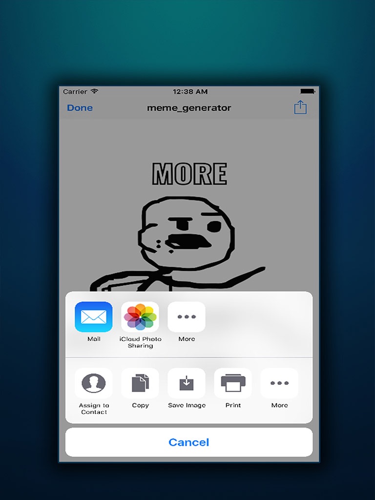This meme generator App Lets You easily and quickly create simple memes using images from gallery or picking preloaded memes from the app library and adding the two typical label above and below the image.