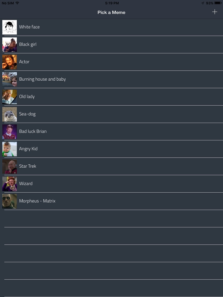 Meme Generator is a Universal App. You can create your funny meme images from your own pictures or from the ones suggested on the Home screen (you can add all images you want in there). Then, after setting the top and bottom texts over your selected picture you can share them by Mail, SMS or by the social network apps installed on your device, like Facebook, Twitter, Google +, WhatsApp, etc.