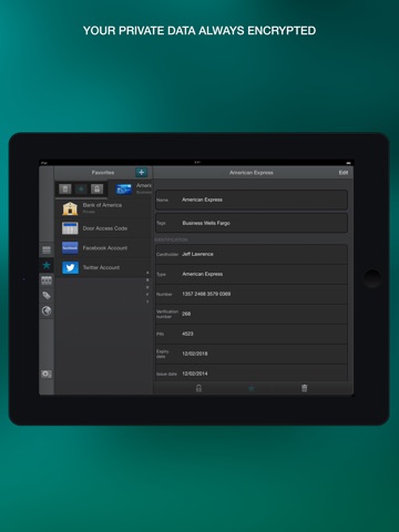 ◾ store secret data: passwords, access codes, accounts, credit cards, logins, notes and other sensitive information