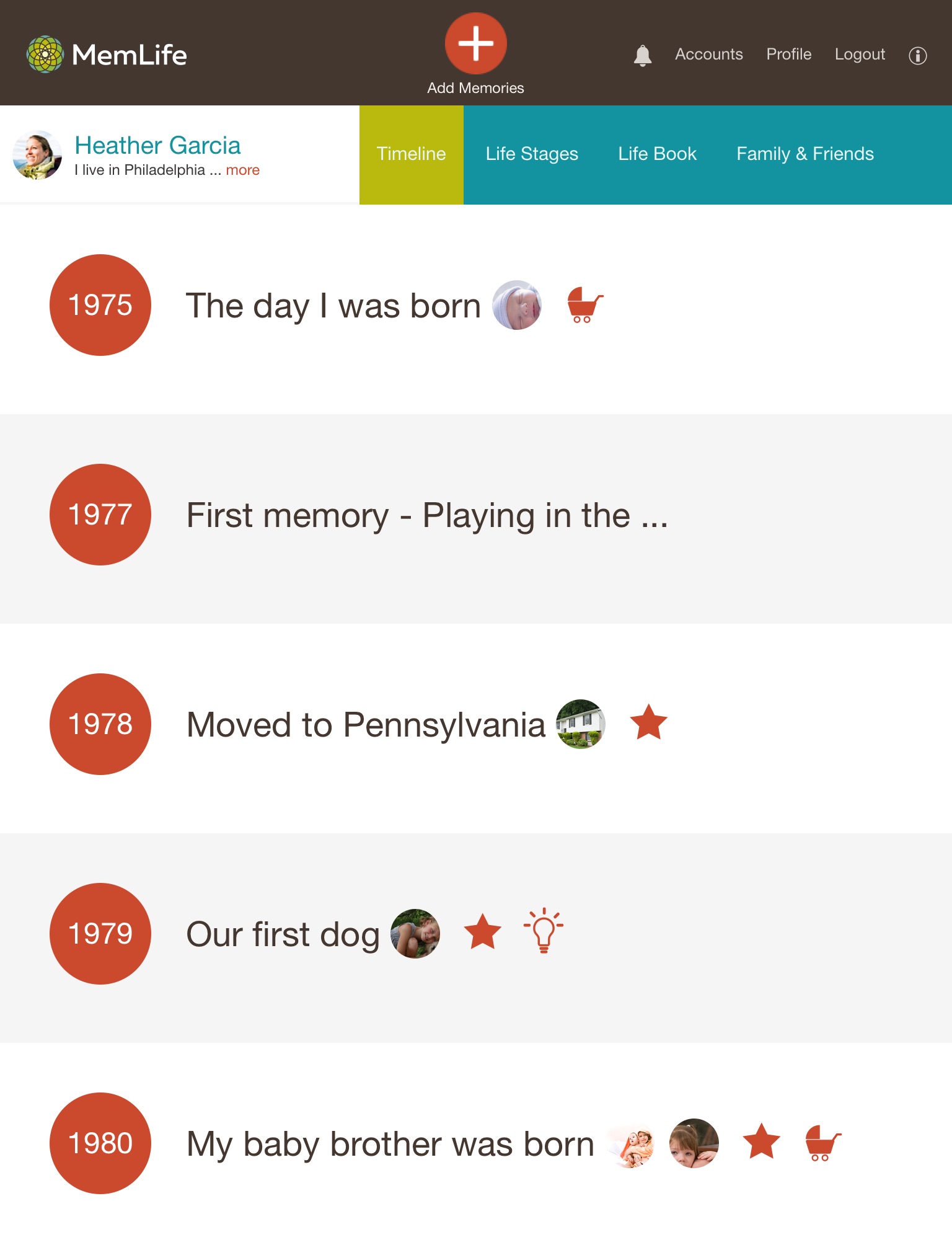 • When a great memory pops into your mind, go to MemLife and just jot it down. You can edit and add photos later to enhance your story.